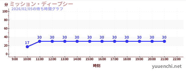 2026/02/05の待ち時間グラフ (ミッション・ディープシー)