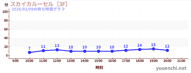 2026/02/09の待ち時間グラフ (スカイカルーセル[3F])