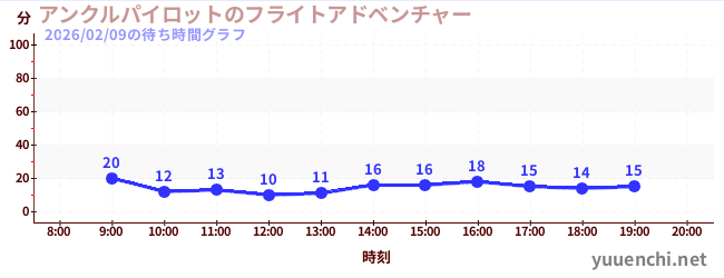 2026/02/09の待ち時間グラフ (アンクルパイロットのフライトアドベンチャー)