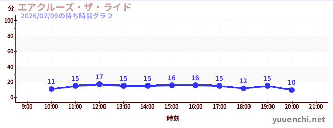 2026/02/09の待ち時間グラフ (エアクルーズ・ザ・ライド)