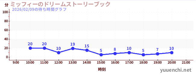 2026/02/09の待ち時間グラフ (ミッフィーのドリームストーリーブック)