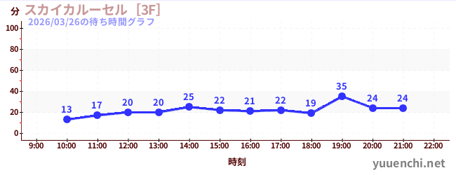 2026/03/26の待ち時間グラフ (スカイカルーセル[3F])