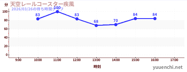 2026/03/26の待ち時間グラフ (天空レールコースター疾風)