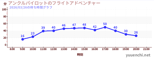 2026/03/26の待ち時間グラフ (アンクルパイロットのフライトアドベンチャー)