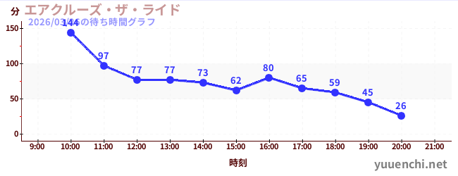 2026/03/26の待ち時間グラフ (エアクルーズ・ザ・ライド)