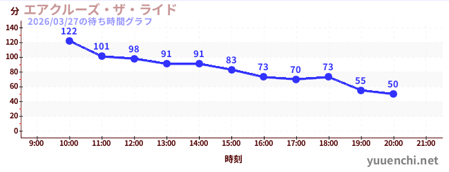 2026/03/27の待ち時間グラフ (エアクルーズ・ザ・ライド)