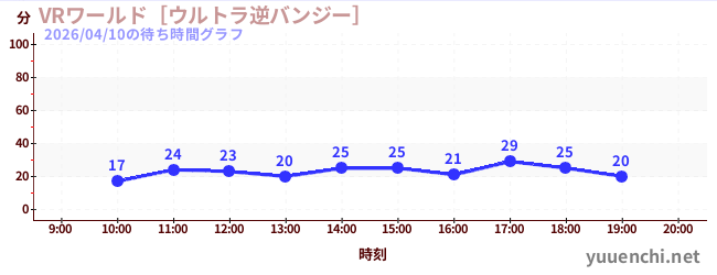 2026/04/10の待ち時間グラフ (VRワールド[ウルトラ逆バンジー])