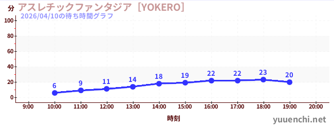 2026/04/10の待ち時間グラフ (アスレチックファンタジア[YOKERO])