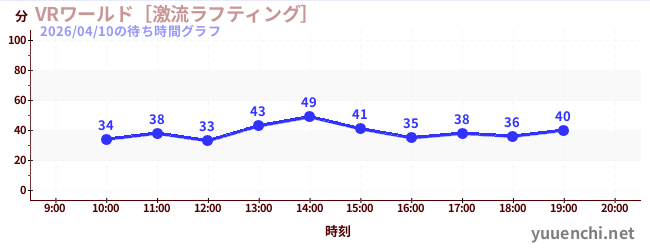 2026/04/10の待ち時間グラフ (VRワールド[激流ラフティング])