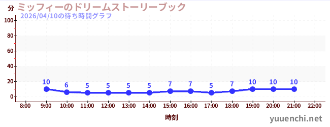 2026/04/10の待ち時間グラフ (ミッフィーのドリームストーリーブック)