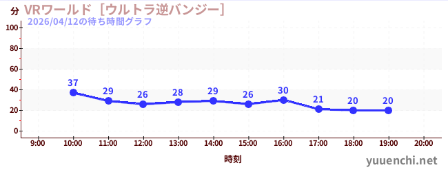 2026/04/12の待ち時間グラフ (VRワールド[ウルトラ逆バンジー])