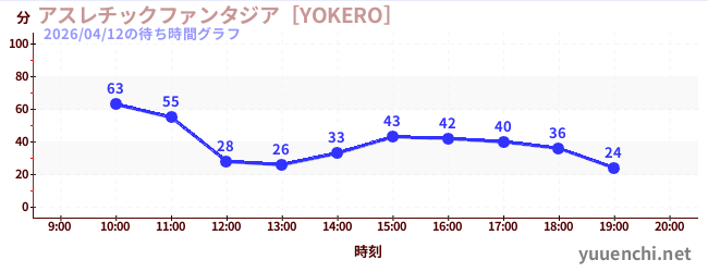 2026/04/12の待ち時間グラフ (アスレチックファンタジア[YOKERO])