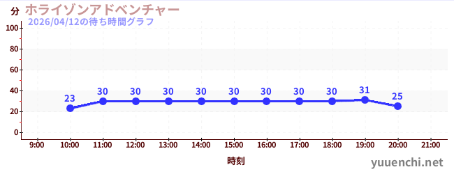 2026/04/12の待ち時間グラフ (ホライゾンアドベンチャー)