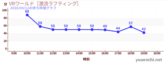 2026/04/12の待ち時間グラフ (VRワールド[激流ラフティング])