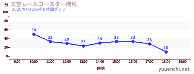 2026/04/12の待ち時間グラフ (天空レールコースター疾風)