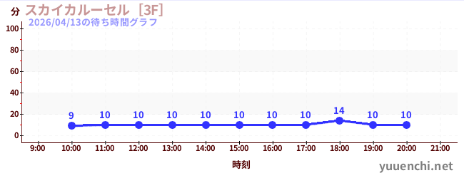 今天迄今為止的擁擠圖表 (天空旋轉木馬 [2F])