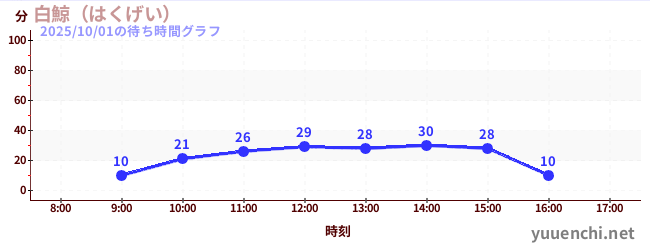 2025/10/01の待ち時間グラフ ホーム 待ち時間グラフ一覧 2025/10/01の待ち時間グラフ 画像提供:ナガシマスパーランド リアルタイム待ち時間 過去の混雑カレンダー 今日の混雑情報 アトラクション一覧 待ち時間グラフ アトラクションランキング ある日の時間ごとグラフ ある月の日ごとグラフ ある年の月ごとグラフ 直近3週間グラフ ある年に日ごとグラフ 09/26 09/27 09/28 09/29 09/30 10/01 10/02 2025/10/01の待ち時間グラフ (白鯨(はくげい))