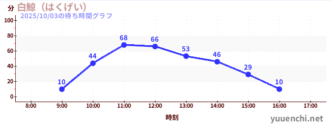 2025/10/03の待ち時間グラフ ホーム 待ち時間グラフ一覧 2025/10/03の待ち時間グラフ 画像提供:ナガシマスパーランド リアルタイム待ち時間 過去の混雑カレンダー 今日の混雑情報 アトラクション一覧 待ち時間グラフ アトラクションランキング ある日の時間ごとグラフ ある月の日ごとグラフ ある年の月ごとグラフ 直近3週間グラフ ある年に日ごとグラフ 09/28 09/29 09/30 10/01 10/02 10/03 10/04 2025/10/03の待ち時間グラフ (白鯨(はくげい))