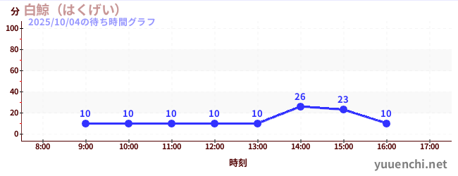 2025/10/04の待ち時間グラフ ホーム 待ち時間グラフ一覧 2025/10/04の待ち時間グラフ 画像提供:ナガシマスパーランド リアルタイム待ち時間 過去の混雑カレンダー 今日の混雑情報 アトラクション一覧 待ち時間グラフ アトラクションランキング ある日の時間ごとグラフ ある月の日ごとグラフ ある年の月ごとグラフ 直近3週間グラフ ある年に日ごとグラフ 10/01 10/02 10/03 10/04 10/05 10/06 10/07 2025/10/04の待ち時間グラフ (白鯨(はくげい))