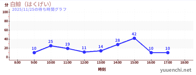 2025/11/25の待ち時間グラフ ホーム 待ち時間グラフ一覧 2025/11/25の待ち時間グラフ 画像提供:ナガシマスパーランド リアルタイム待ち時間 過去の混雑カレンダー 今日の混雑情報 アトラクション一覧 待ち時間グラフ アトラクションランキング ある日の時間ごとグラフ ある月の日ごとグラフ ある年の月ごとグラフ 直近3週間グラフ ある年に日ごとグラフ 11/20 11/21 11/22 11/23 11/24 11/25 11/26 2025/11/25の待ち時間グラフ (白鯨(はくげい))