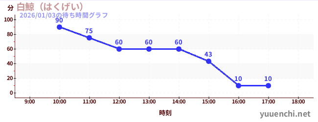 2026/01/03の待ち時間グラフ ホーム 待ち時間グラフ一覧 2026/01/03の待ち時間グラフ 画像提供:ナガシマスパーランド リアルタイム待ち時間 過去の混雑カレンダー 今日の混雑情報 アトラクション一覧 待ち時間グラフ アトラクションランキング ある日の時間ごとグラフ ある月の日ごとグラフ ある年の月ごとグラフ 直近3週間グラフ ある年に日ごとグラフ 12/30 12/31 01/01 01/02 01/03 01/04 01/05 2026/01/03の待ち時間グラフ (白鯨(はくげい))