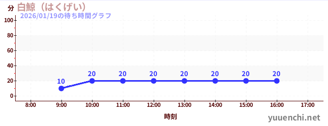 2026/01/19の待ち時間グラフ ホーム 待ち時間グラフ一覧 2026/01/19の待ち時間グラフ 画像提供:ナガシマスパーランド リアルタイム待ち時間 過去の混雑カレンダー 今日の混雑情報 アトラクション一覧 待ち時間グラフ アトラクションランキング ある日の時間ごとグラフ ある月の日ごとグラフ ある年の月ごとグラフ 直近3週間グラフ ある年に日ごとグラフ 01/14 01/15 01/16 01/17 01/18 01/19 01/20 2026/01/19の待ち時間グラフ (白鯨(はくげい))