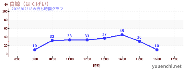 2026/02/18の待ち時間グラフ ホーム 待ち時間グラフ一覧 2026/02/18の待ち時間グラフ 画像提供:ナガシマスパーランド リアルタイム待ち時間 過去の混雑カレンダー 今日の混雑情報 アトラクション一覧 待ち時間グラフ アトラクションランキング ある日の時間ごとグラフ ある月の日ごとグラフ ある年の月ごとグラフ 直近3週間グラフ ある年に日ごとグラフ 02/13 02/14 02/15 02/16 02/17 02/18 02/19 2026/02/18の待ち時間グラフ (白鯨(はくげい))