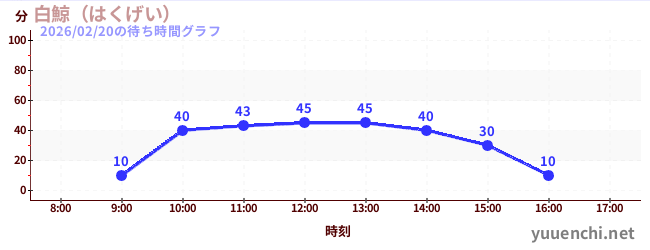 2026/02/20の待ち時間グラフ ホーム 待ち時間グラフ一覧 2026/02/20の待ち時間グラフ 画像提供:ナガシマスパーランド リアルタイム待ち時間 過去の混雑カレンダー 今日の混雑情報 アトラクション一覧 待ち時間グラフ アトラクションランキング ある日の時間ごとグラフ ある月の日ごとグラフ ある年の月ごとグラフ 直近3週間グラフ ある年に日ごとグラフ 02/15 02/16 02/17 02/18 02/19 02/20 02/21 2026/02/20の待ち時間グラフ (白鯨(はくげい))