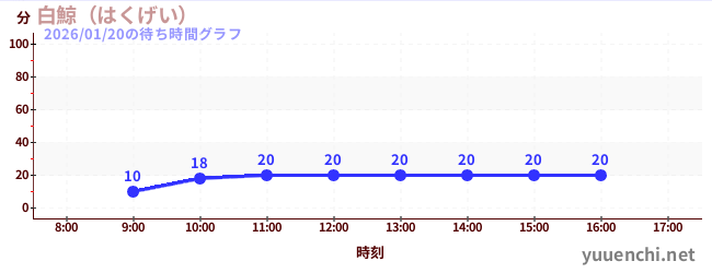 2026/01/20の待ち時間グラフ ホーム 待ち時間グラフ一覧 2026/01/20の待ち時間グラフ 画像提供:ナガシマスパーランド リアルタイム待ち時間 過去の混雑カレンダー 今日の混雑情報 アトラクション一覧 待ち時間グラフ アトラクションランキング ある日の時間ごとグラフ ある月の日ごとグラフ ある年の月ごとグラフ 直近3週間グラフ ある年に日ごとグラフ 01/17 01/18 01/19 01/20 01/21 01/22 01/23 2026/01/20の待ち時間グラフ (白鯨(はくげい))
