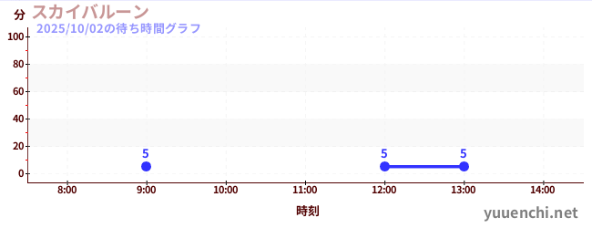 2025/10/02の待ち時間グラフ (スカイバルーン )