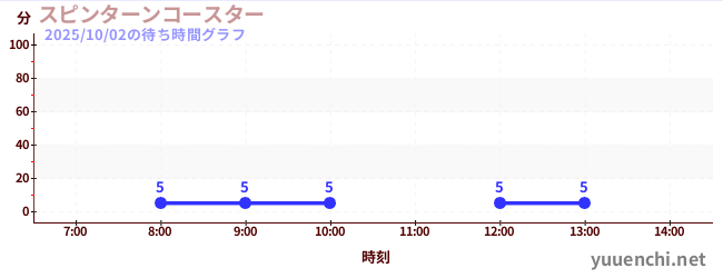 2025/10/02の待ち時間グラフ (スピンターンコースター )