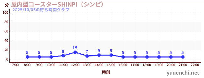 2025/10/05の待ち時間グラフ (屋内型コースターSHINPI(シンピ) )