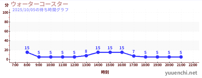 2025/10/05の待ち時間グラフ (ウォーターコースター )