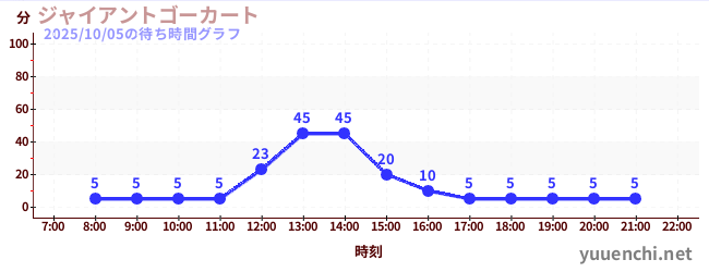 2025/10/05の待ち時間グラフ (ジャイアントゴーカート )