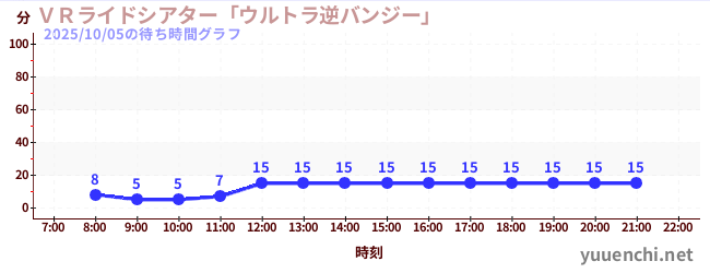 2025/10/05の待ち時間グラフ (VRライドシアター「ウルトラ逆バンジー」 )