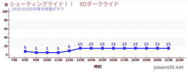 2025/10/05の待ち時間グラフ (シューティングライド!! XDダークライド )