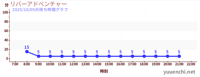 2025/10/05の待ち時間グラフ (リバーアドベンチャー )