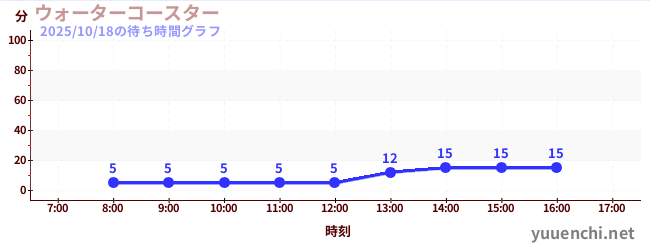 2025/10/18の待ち時間グラフ (ウォーターコースター )