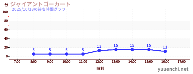 2025/10/18の待ち時間グラフ (ジャイアントゴーカート )