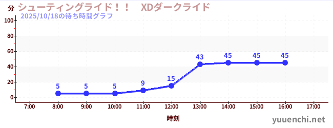 2025/10/18の待ち時間グラフ (シューティングライド!! XDダークライド )