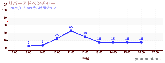 2025/10/18の待ち時間グラフ (リバーアドベンチャー )