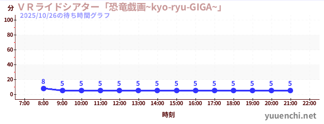 2025/10/26の待ち時間グラフ (VRライドシアター「恐竜戯画~kyo-ryu-GIGA~」 )