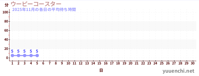 2025/11の一日平均待ち時間 (ウーピーコースター )
