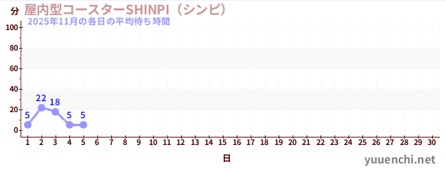 2025/11の一日平均待ち時間 (屋内型コースターSHINPI(シンピ) )