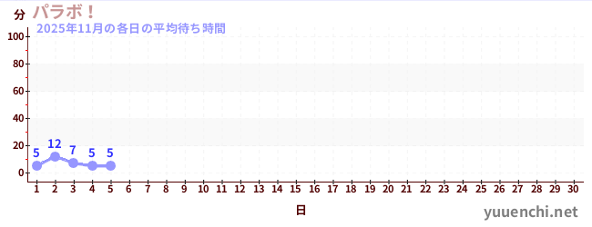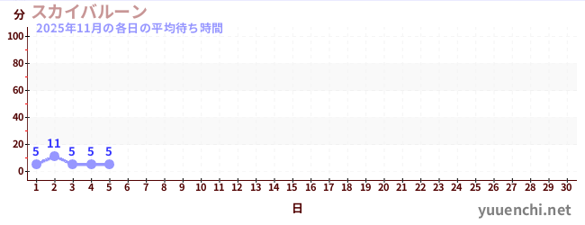 2025/11の一日平均待ち時間 (スカイバルーン )