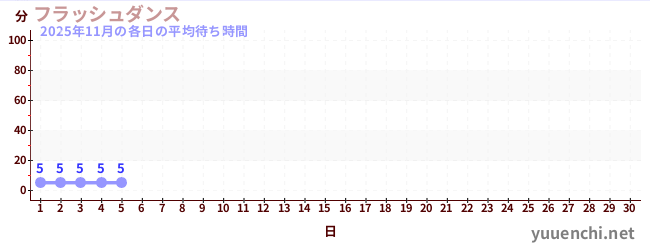 2025/11の一日平均待ち時間 (フラッシュダンス )