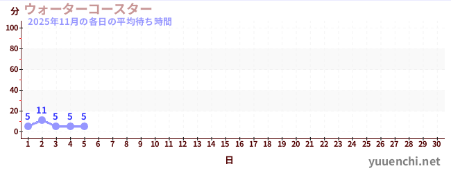 2025/11の一日平均待ち時間 (ウォーターコースター )