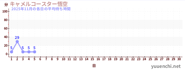 2025/11の一日平均待ち時間 (キャメルコースター悟空 )