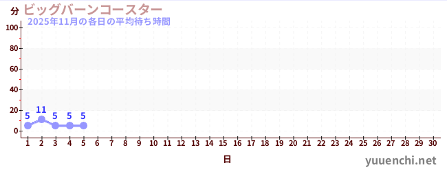 2025/11の一日平均待ち時間 (ビッグバーンコースター )