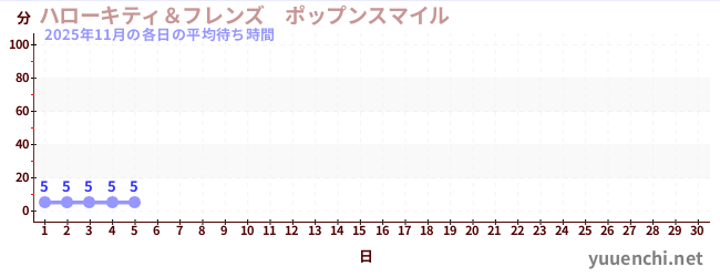 2025/11の一日平均待ち時間 (ハローキティ&フレンズ ポップンスマイル )